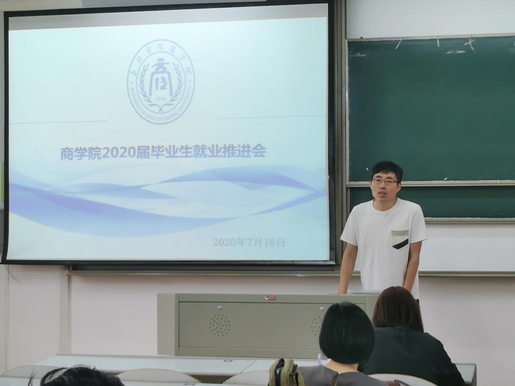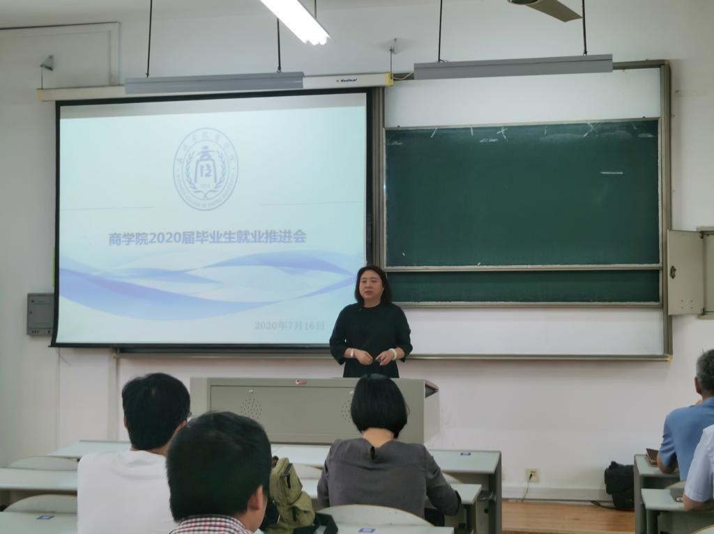 7月16日上午,成人短视频 2020届毕业生就业推进会在教一403召开。成人短视频 院长潘煜双出席会议并讲话,党委书记邵燕、分管教学副院长李郁明、分管成人短视频 工作副书记陈云飞、各专业系主任、学工线全体辅导员参加会议,会议由陈云飞书记主持。