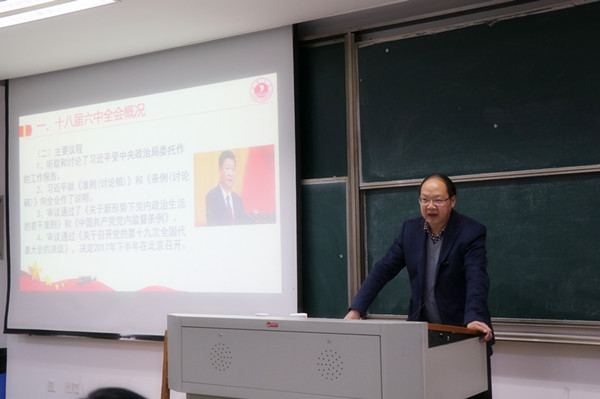 11月17日下午,校党委书记黄文秀应邀到成人短视频 作题为《十八届六中全会精神》的宣讲报告。成人短视频 党政领导、全体教职工、成人短视频 党员发展对象等近200名师生一起认真聆听了报告。